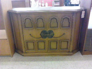 My favorite find of the day was this buffet. The ornate design of the hardware and the carvings was amazing for it's $35 price tag. The hardware could easily just get a coat of Rustoleum's Oil Rubbed Bronze and there is about a million different ways to paint/stain it.